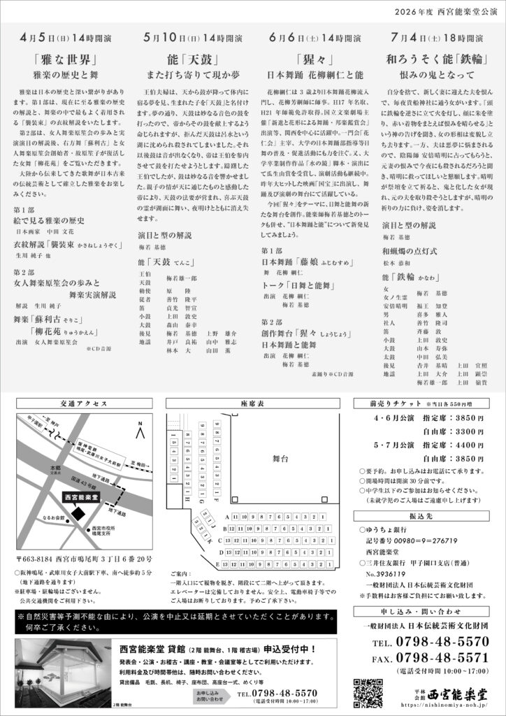 ・ゆうちょ銀行 記号番号 00980=9=276719 西宮能楽堂